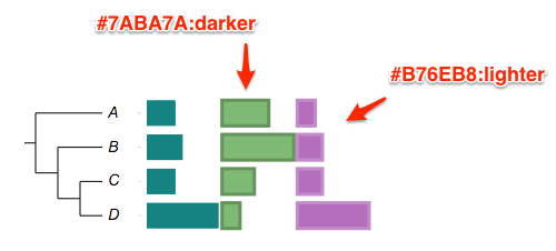 * purple:ligher or purple:brighter == use lighter purple as stroke color; the stroke color will be 20% brighter than the specific color